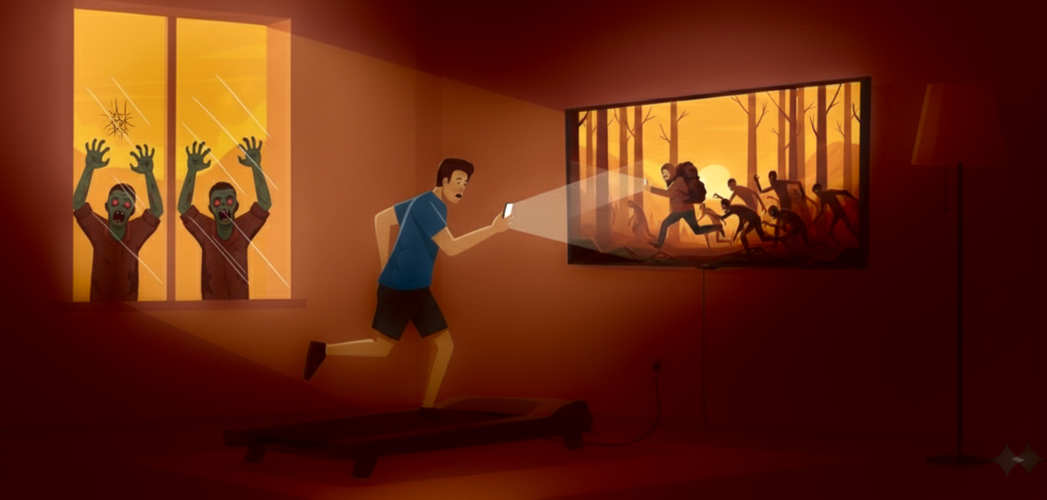 " Run from the Dead" is an indie video game that lets you control a character by using your phone to track your own body's movement. When you walk in place, or on a treadmill, your character will also walk. When you swing your phone, your character will swing their weapon. Our goal is to make this a game that keeps you moving!